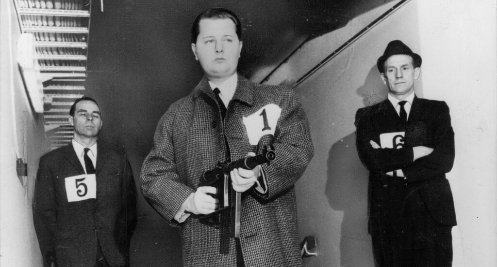 Leif Peters hade själv jobbat som vakt i ett par år, och det var under den tiden som han hade träffat sina två kumpaner. Tillsammans drömde de om det stora lyftet, det som skulle göra dem rika. De hade gjort flera lyckade inbrott, men natten då de gick ner i det underjordiska garaget i Handens centrum förändrades allting. När de upptäckte att det fanns en vakt och två poliser var det för sent att fly, och Peters slet fram sin kpist och började skjuta. Hans båda kumpaner blev förfärade och flydde upp från lastbryggan till gården utanför. Efter en stund kom även Leif Peters upp.