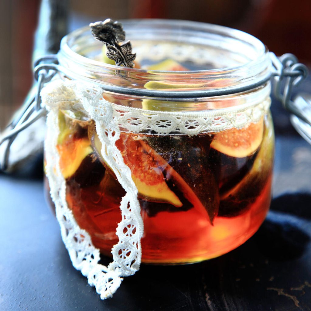 För klyftade fikon: Skölj fikonen och dela dem på mitten eller i grova klyftor. Lägg dem i en burk och häll på den varma lagen. Låt dra minst någon timme innan servering.