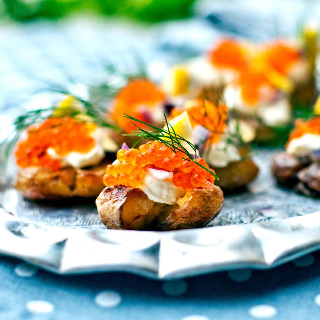 Små lyxiga munsbitar som med fördel kan avnjutas i ett bett. Absolut godast med färskpotatis, men det har vi ju inte året runt. Då fungerar små delikatesspotatisar perfekt.