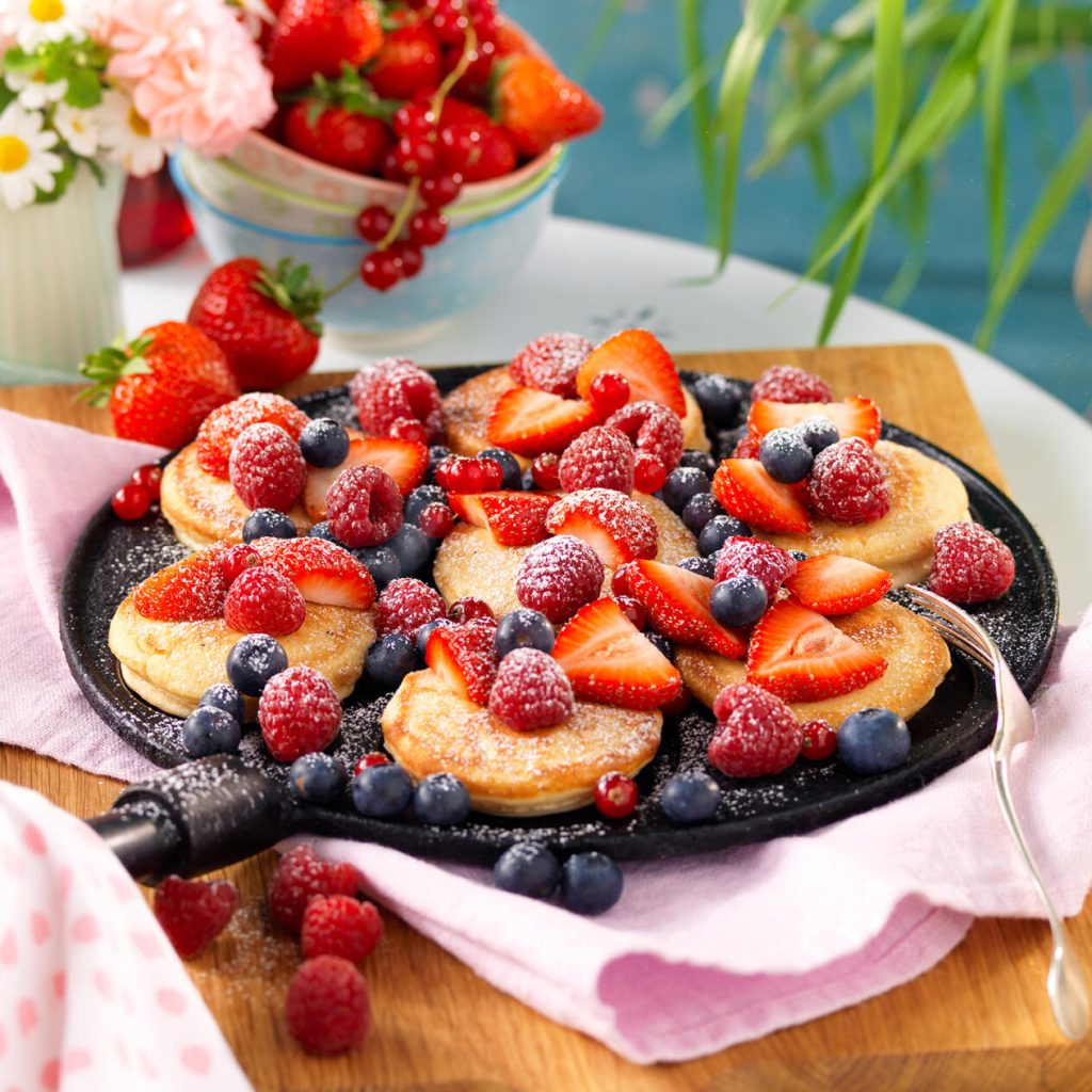 Strö över florsocker och servera med bär och eventuellt vispad grädde.