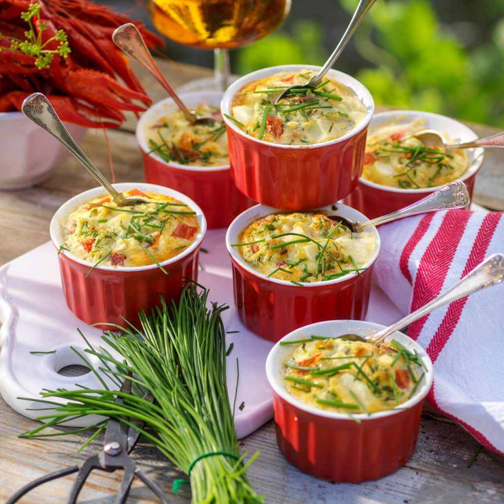 Grädda omeletterna i ugnens mitt i ca 20–25 minuter. Känn med sticka