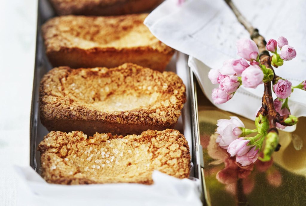 Häll smeten i små sockerkaksformar eller muffinsformar. Grädda mitt i ugnen i 15–20 minuter. När kakorna gräddats i tio minuter tas de ut och dekoreras med pärlsocker. In med kakorna i ugnen igen och grädda vidare, tills de är färdiga.