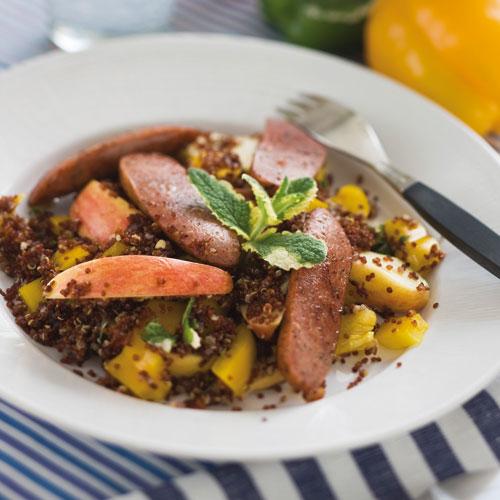 Röd quinoa med korv och äpple