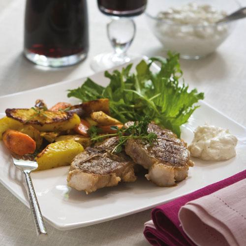 Lammkotletter med chèvrecrème och ugnsrostade rotfrukter