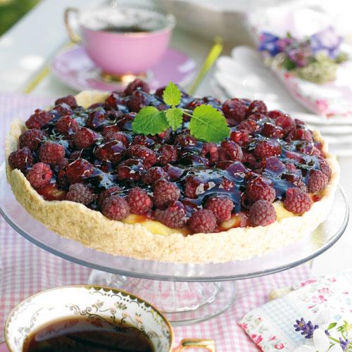 Sommarkaka med hallon och vinbär