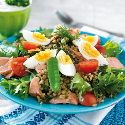 Laxsallad med dillbulgur