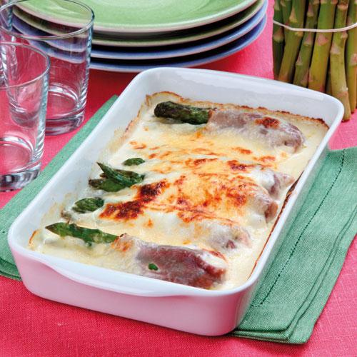 Gratinerad skinklindad sparris