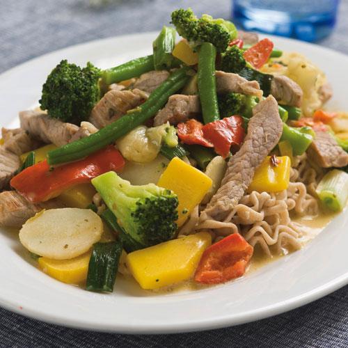Skinkwok med nudlar