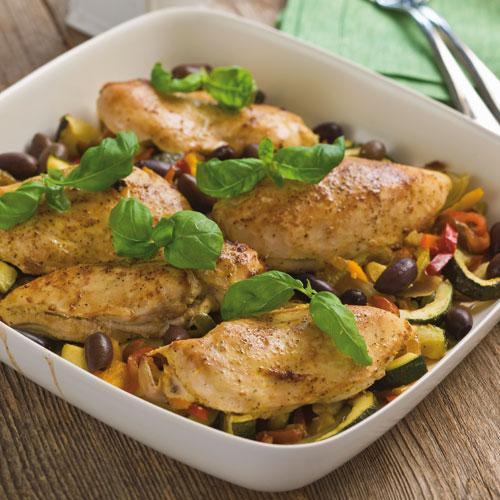Ingefärsmarinerad kyckling på grönsaksbädd