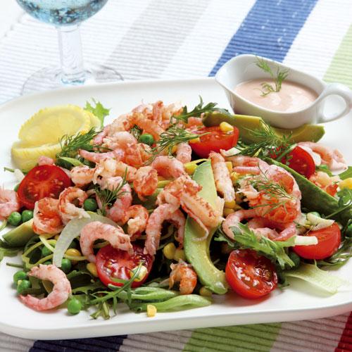 Skaldjursallad med yoghurtdressing