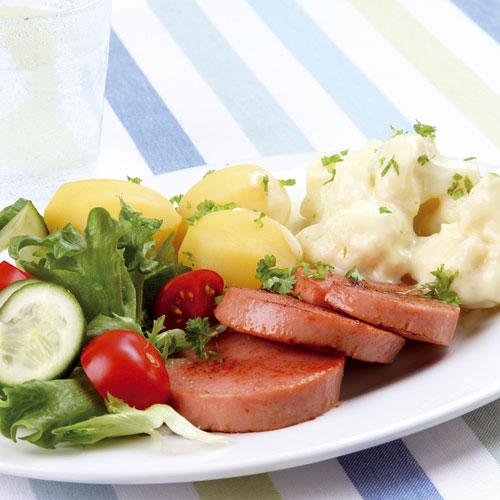 Stekt korv med lättstuvad blomkål