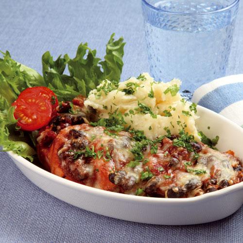 Ugnsgratinerad korv med potatismos