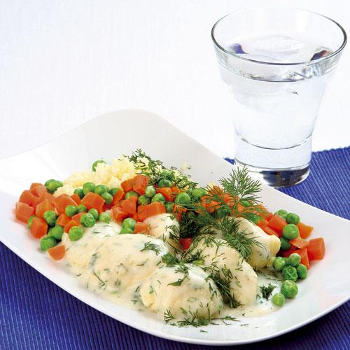 Fiskfärsqueneller med dillsås
