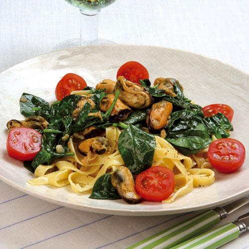 Citrontagliatelle med vitlöksfrästa musslor