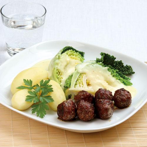 Kryddiga köttbullar med stuvad savoykål