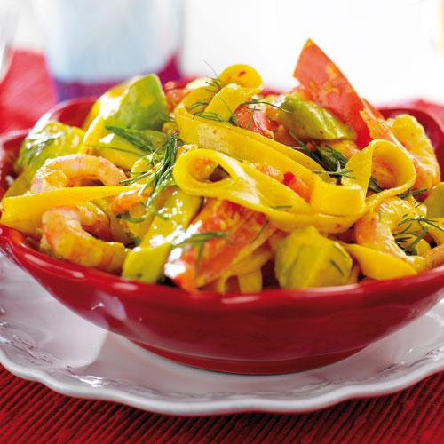Saffranspasta med räkor