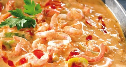 Räkor i krämig sås med chili och paprika
