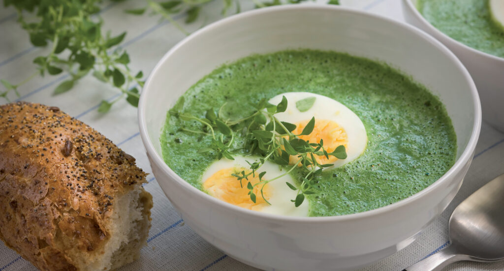 Spenatsoppa med ägghalva