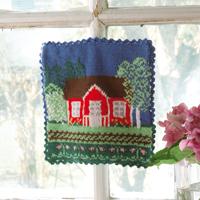 Stickad grytlapp med nyckelpigor