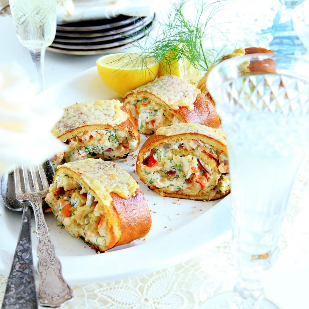 Gratinerad skaldjursrulle