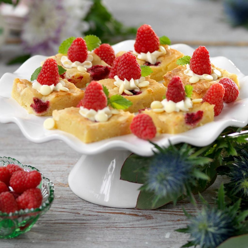 Vit chokladkaka med hallon