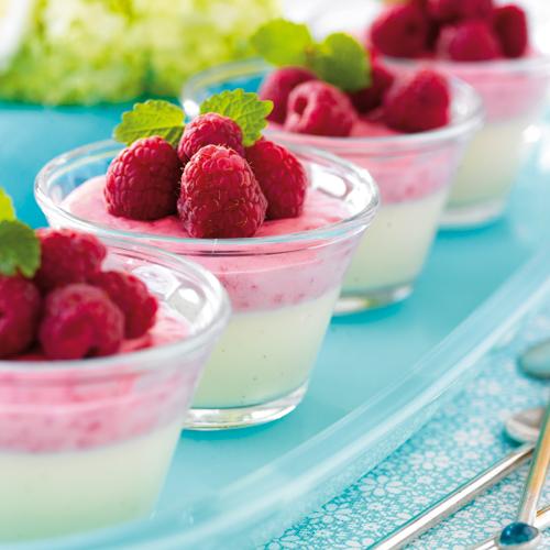 Vit chokladpannacotta med hallonmousse