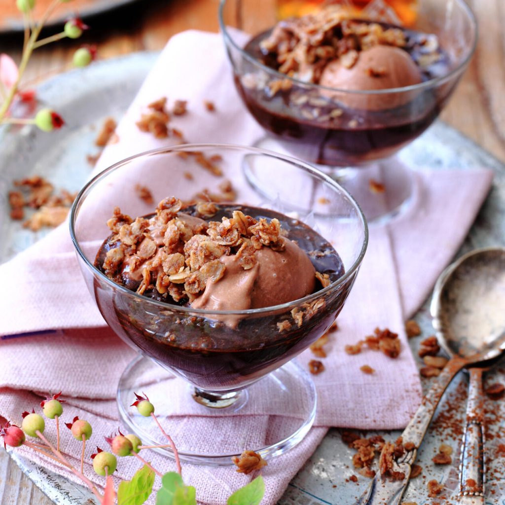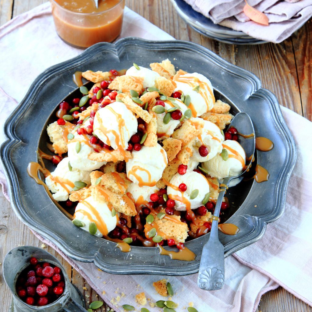 Lingonsviss med kolasås och havreflarn