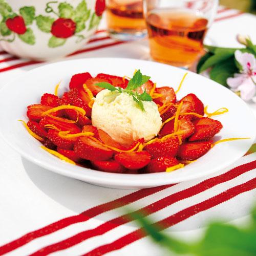 Jordgubbar med flädermousse