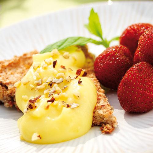 Jordgubbar med mandelbotten