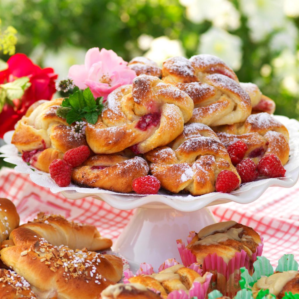 Hallonsnurror med vit choklad