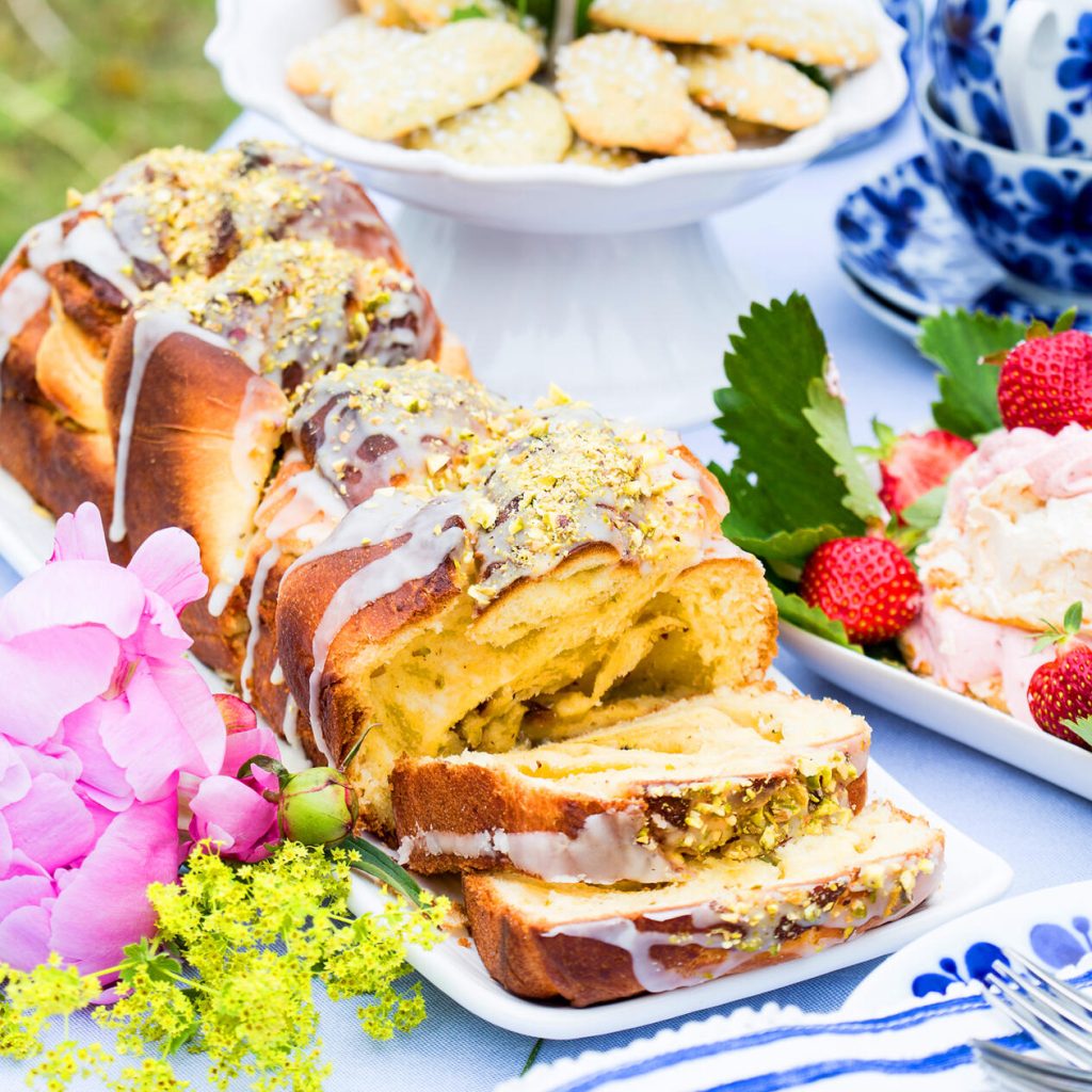 Mandelfylld briochelängd med glasyr