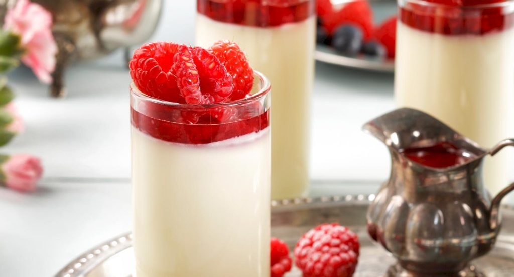 Vaniljpannacotta med hallonsås