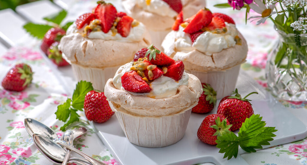 Maränggrottor med jordgubbar