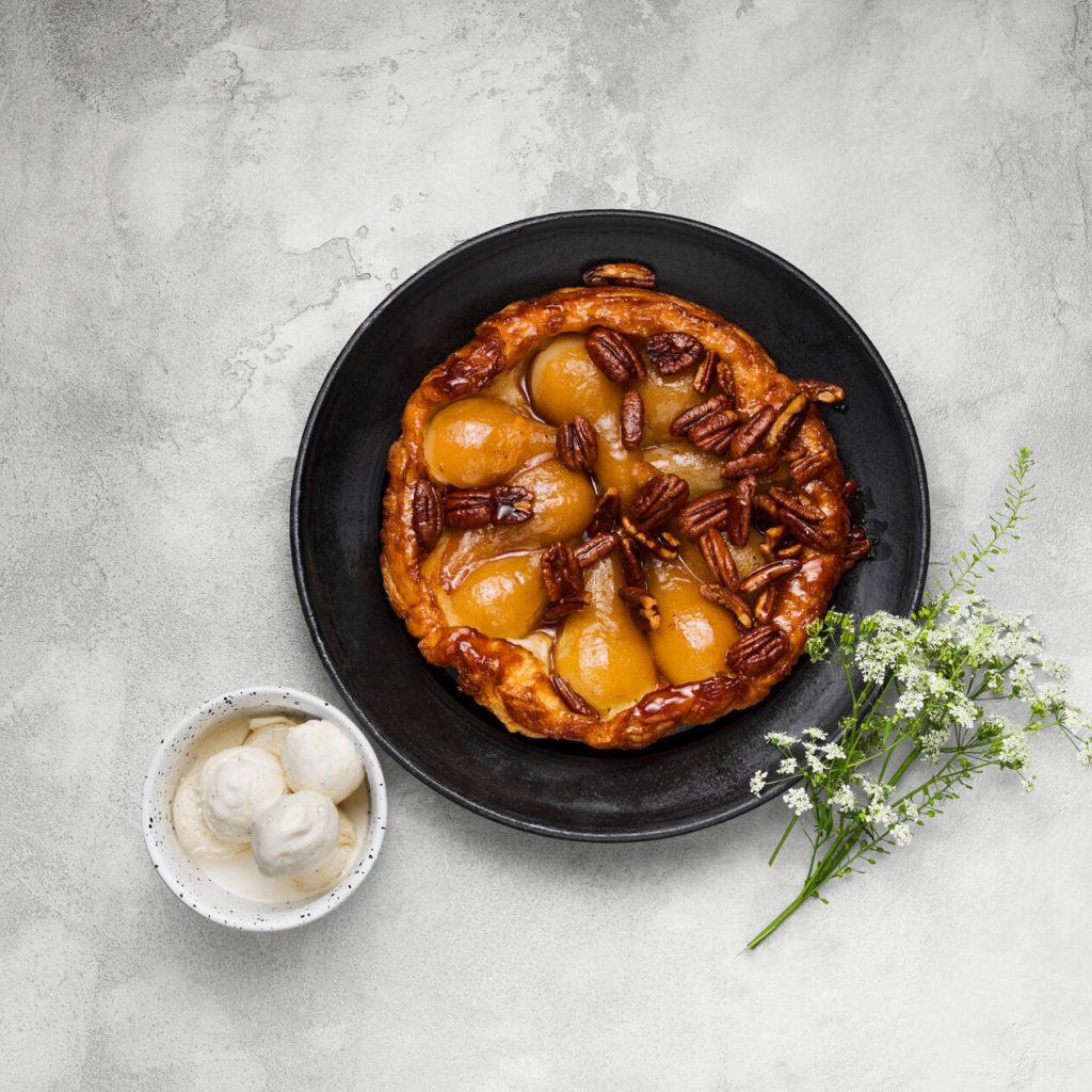 Tarte tatin med päron och pekannötter