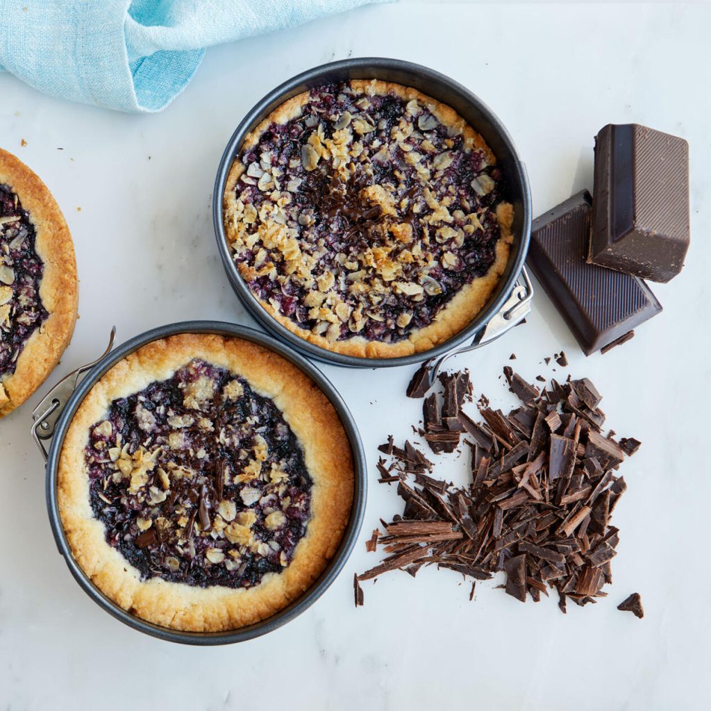 Blåbärspaj med choklad och havreströssel