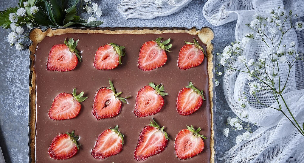 Chokladpaj med jordgubbar