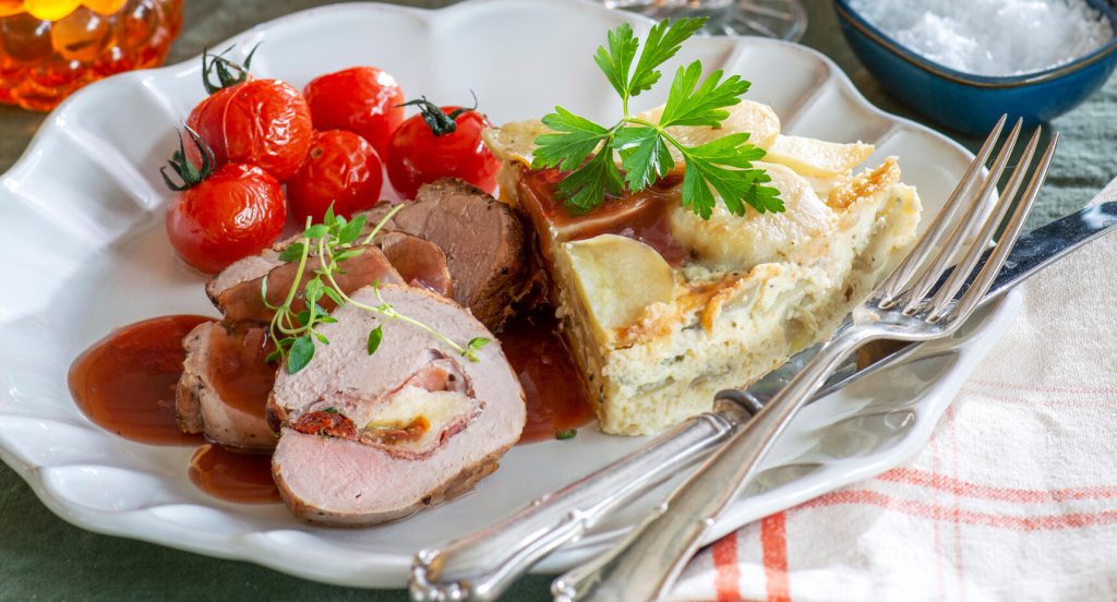Fläskytterfilé med potatis- och vitkålsgratäng