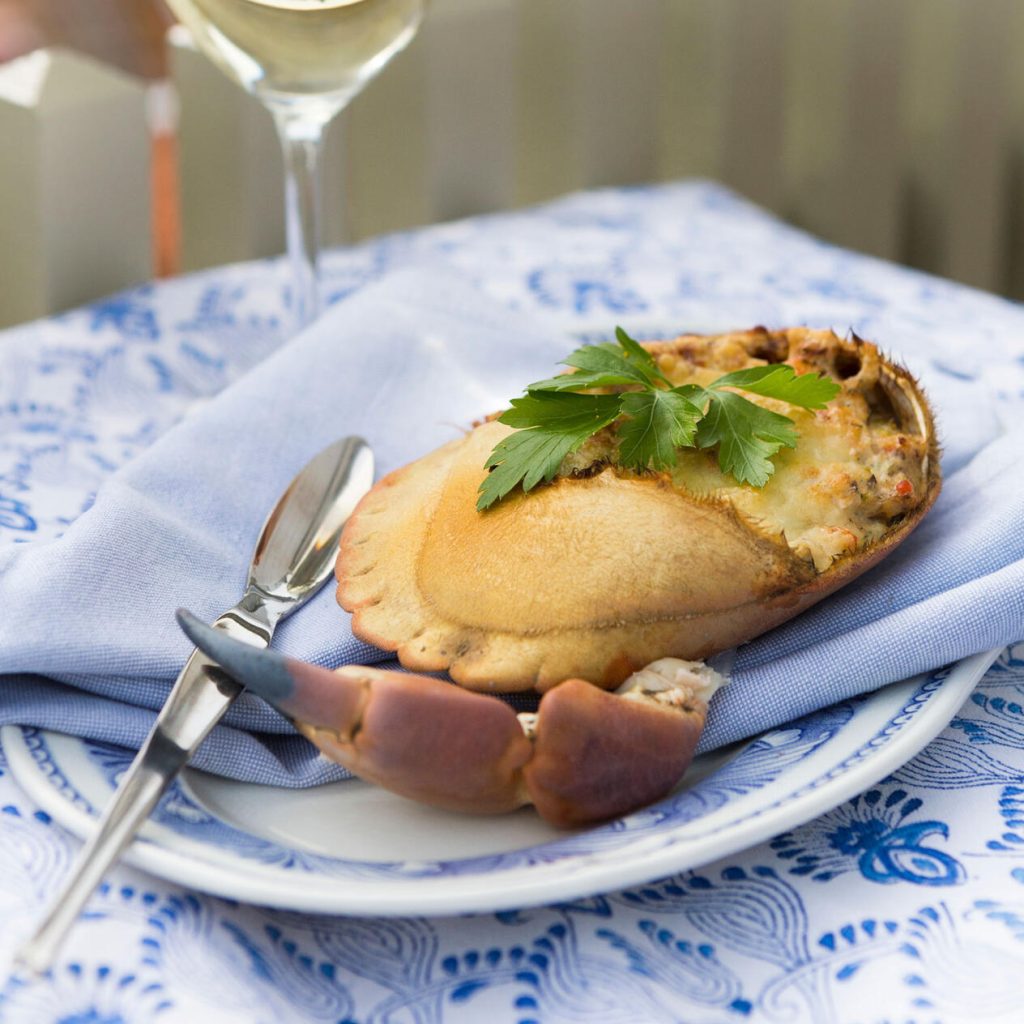 Gratinerad fylld krabba