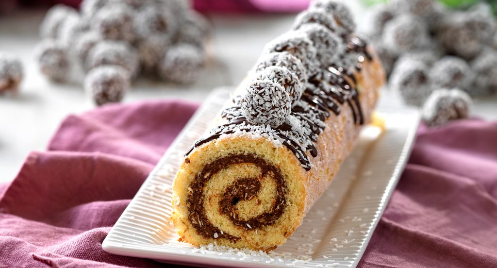 Rulltårta med chokladbollsfyllning
