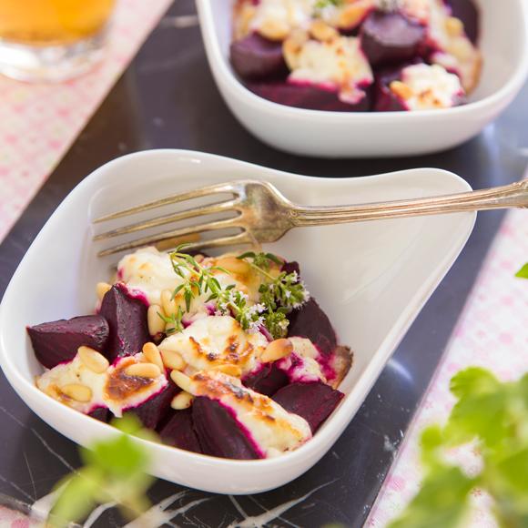 Gratinerade rödbetor med färskost och chèvre