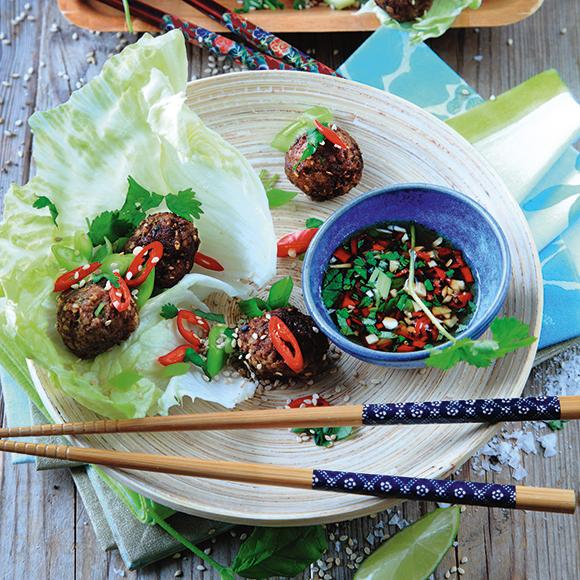 Asiatiska köttbullar i salladsblad
