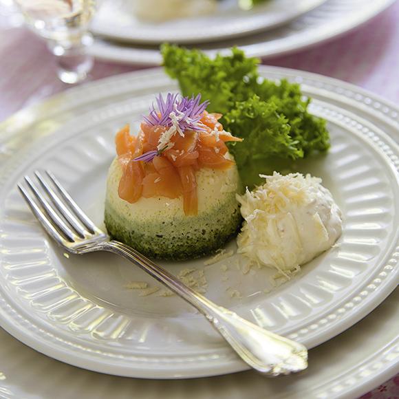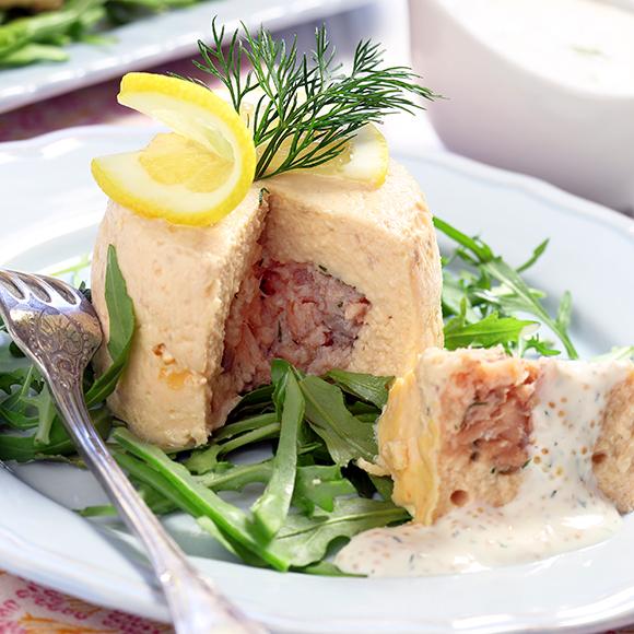 Nässeltimbal med lax och pepparrotskräm