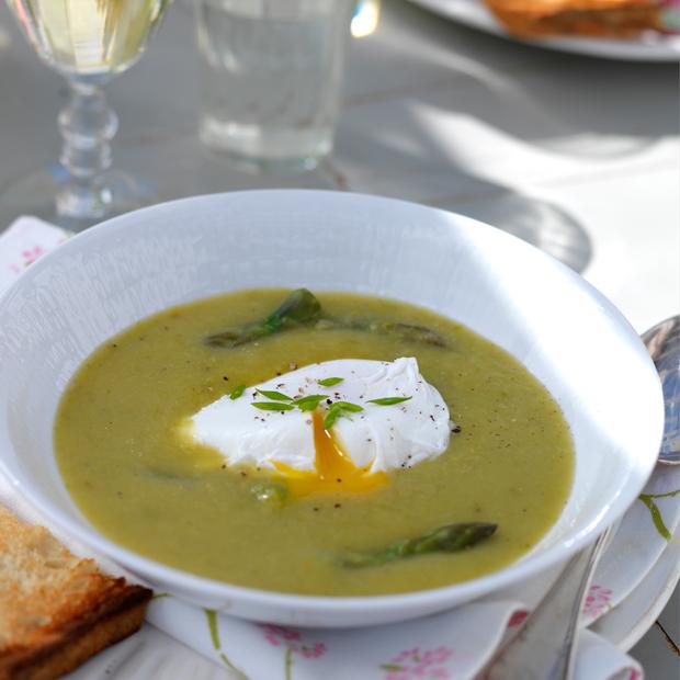 Sparrissoppa med pocherat ägg