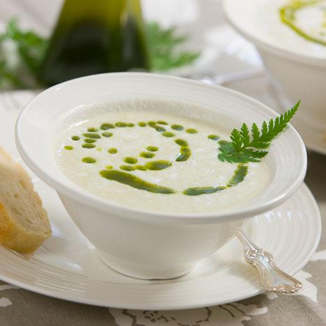 Jordärtskockssoppa med körvel- och basilikaolja