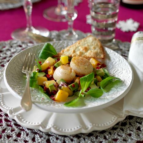 Pilgrimsmusslor med mangosallad