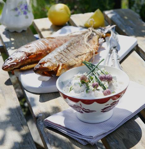 Varmrökt lax med melonmimosa
