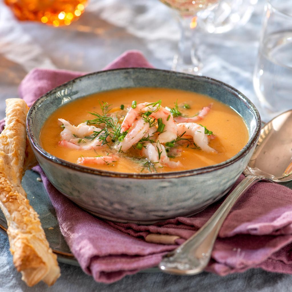 Sötpotatissoppa med dillräkor