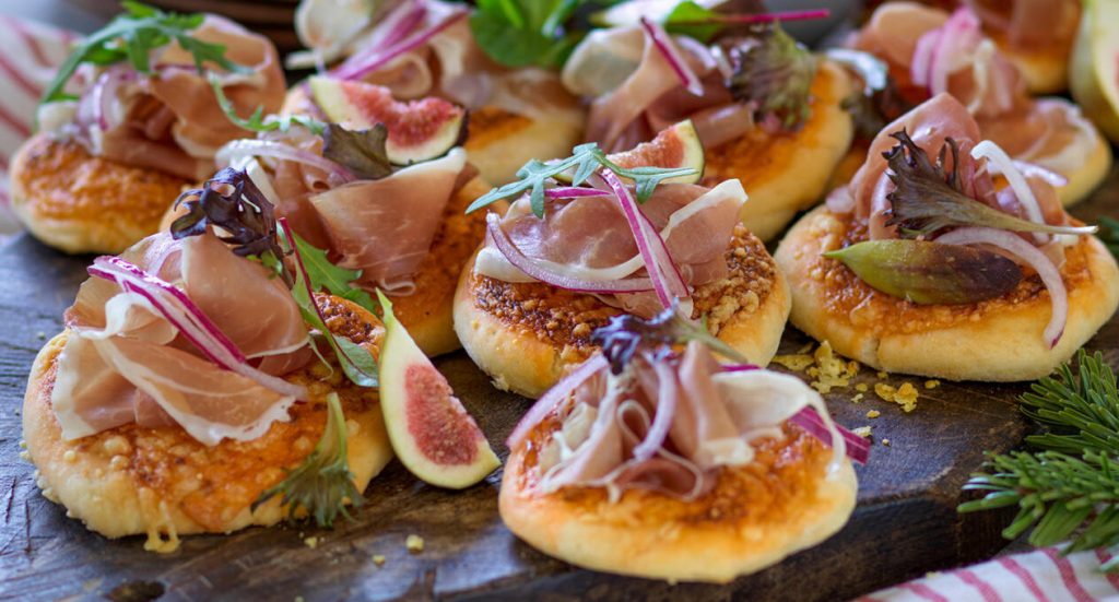 Minipizzor med skinka och fikon