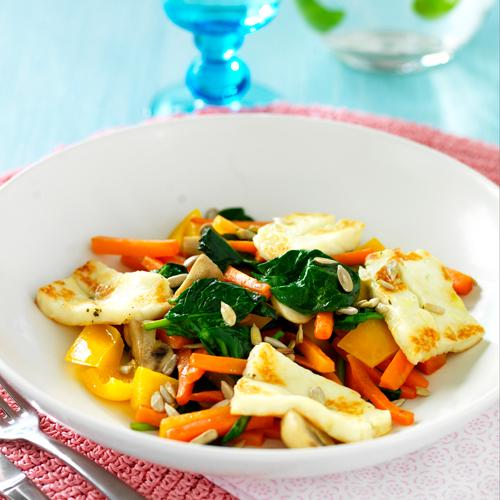 Stekt halloumi med varm sallad