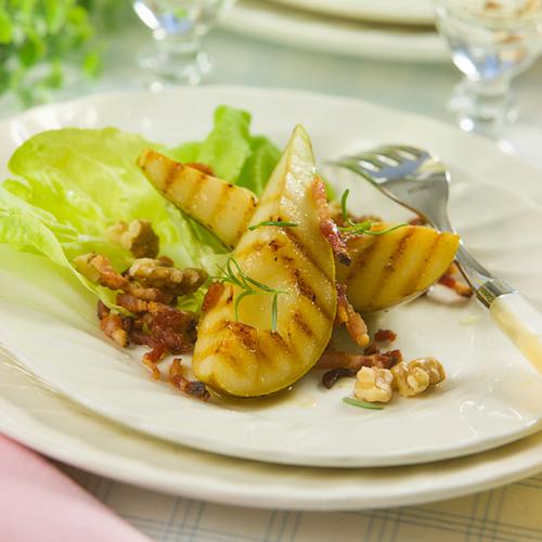 Grillat honungsmarinerat päron med valnötter och knaprigt fläsk
